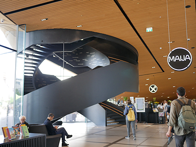 オーディ・ヘルシンキ中央図書館(Oodi)を見学する。 これはフィンランド建国100周年を祝うプロジェクトのひとつとして2018年に建てられたもので、国会議事堂に面して建っている。