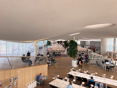 単に本を借りて読んで勉強する図書館というだけではなく、様々な用途で楽しむことが出来るようになっていて、建物の設計だけでなく機能もとても面白い施設だった。