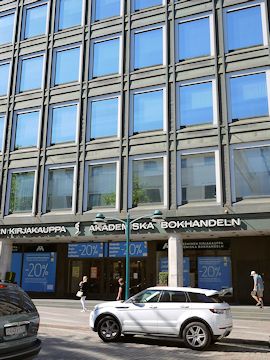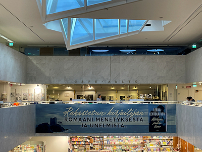 アカデミア書店は1893年に創業した歴史ある書店で、ヘルシンキ店は1969年に完成したアルヴァ・アアルトが設計したキリヤタロという商業ビルに入っている。