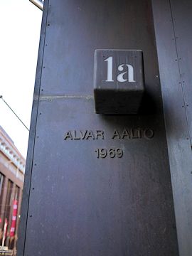 帰り道アアルトがデザインした地下駐車場の入口の前を通ったのですが、扉の取っ手が全て外してあり、全く違う取っ手がついているのを見て、とても淋しい気持ちになりました。 2013年に撮った写真↓