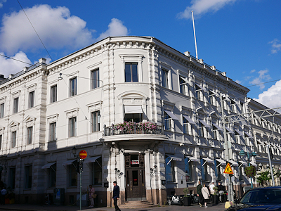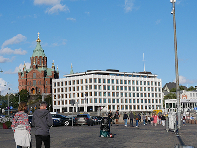 茶色の建物はウスペンスキー大聖堂。 その手前の白い建物はアアルト設計のオフィスビル