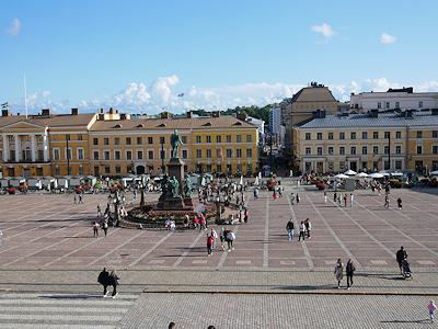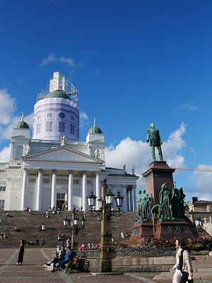 | 大聖堂の前の元老院広場 広場にはロシア皇帝でありフィンランド大公であったアレクサンドル2世のブロンズ像があります。