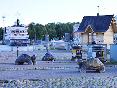 港のマーケット広場周辺に置かれた亀。