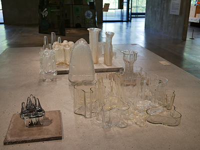 | アアルトがデザインしたガラスのフラワーベースなども展示されています。 |