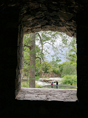 再び城壁の内部へ入ってみました。 開口部から先程の池が見えました。 |