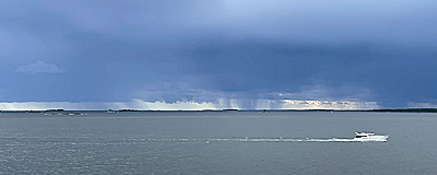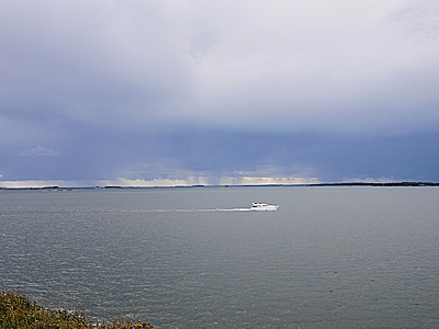 | こちらは雨がやみましたが、対岸には重い雨雲が見えます。 |