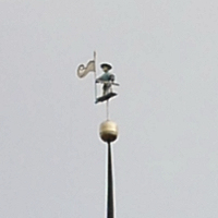 | 市庁舎の塔の上には「トーマスおじいさん」と呼ばれる風見鶏ならぬ風見おじいさんが取り付けられているのだそう。