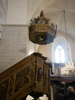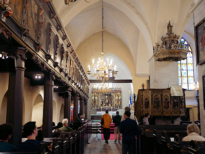 聖霊教会の内部 木彫りの主祭壇は15世紀のもの |
