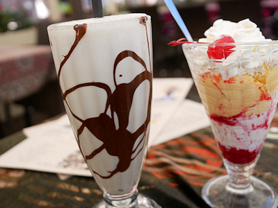 すごい見た目のものを頼んでしまった 左はミルク系の飲み物で右はアイス系