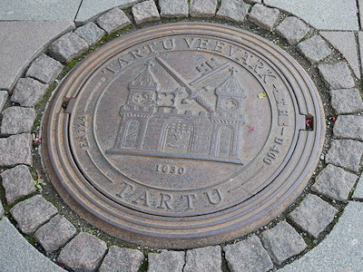 広場のマンホールの蓋 タルトゥ市の市章です |