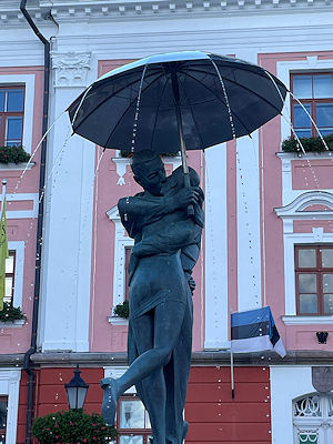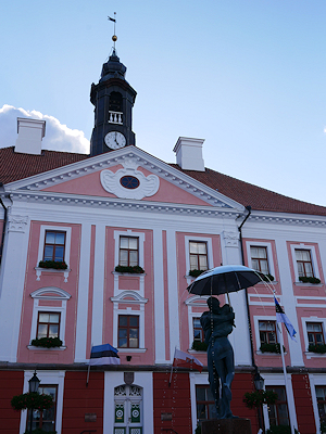 | タルトゥ市庁舎と「キスする学生たちの像」 |