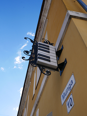 その先の建物 看板がかわいい ピアノに関するお店だったのかな? |