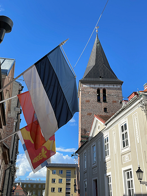 エストニアの国旗とその奥はほとんど見えないけれどタルトゥ市の旗