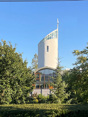 行きに気付いて面白い教会があるなぁと話していたのですが、タイミングが悪くちゃんとした写真は撮れませんでした(それなので名前は分かりませんでした…) |