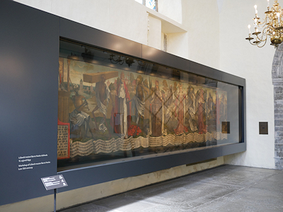 そしてこの聖ニコラス教会でガイドブックに必見と書かれていたのが「死のダンス」という絵画で、15世紀後半にバーント・ノトケというバルト海周辺諸国で活躍した画家が描いたもの。