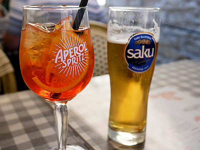 飲み物はこの旅の定番アペロール・スプリッツアー 夫はビール |