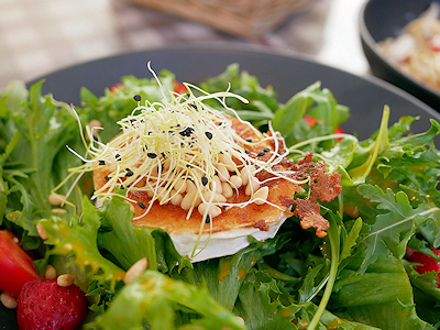 焼いたチーズがのったサラダ 山羊のチーズだったかな… |
