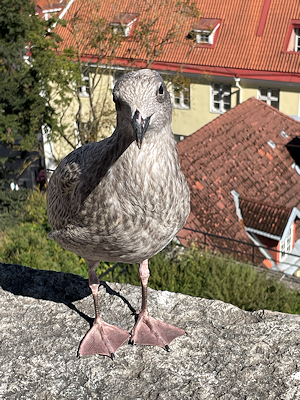 | 手摺の上にはカメラ目線のカモメ |