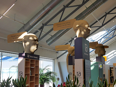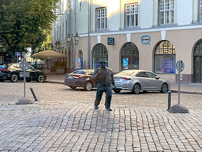 エストニアを代表する作家の首像とのこと 後頭部にその作家の言葉をプリントしたものが突き刺さっていますが…いいんでしょうか…