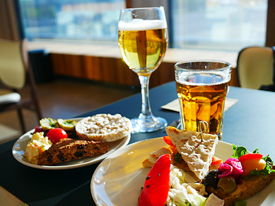 飲み物は夫は朝からビールにしていましたが、私は控えめにアップルジュース |