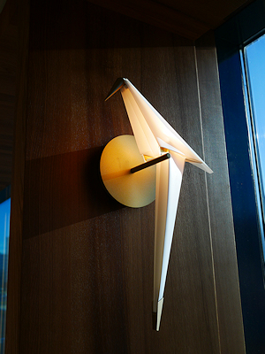 照明もかわいくてオシャレ 枝にとまっている鳥、折り紙のようなデザインです |