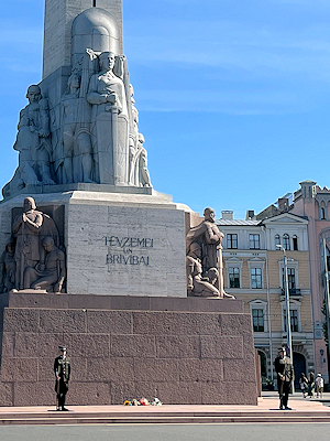基部はラトビアの文化や歴史を表したレリーフで飾られています