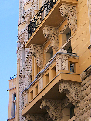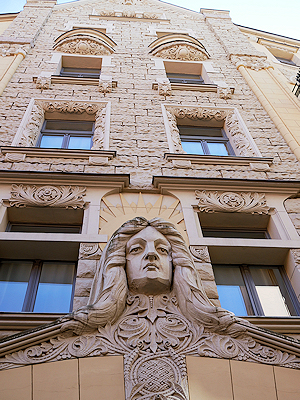 ラトビアでもこのドイツ語圏でのユーゲント・シュティール様式という呼び方が一般的で、リガ市中心部の建物の約3分の1がこの様式の建物なのだそう。