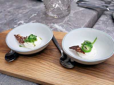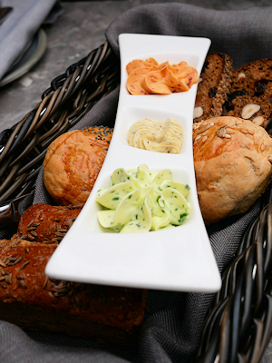 パンも出てくるお店でした パンも三種類もあるし、バター(かな?)も三種類! そして器もオシャレ |
