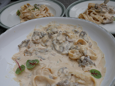 写真を撮る前に取り分けはじめてしまいましたが… クリーム系のパスタ |