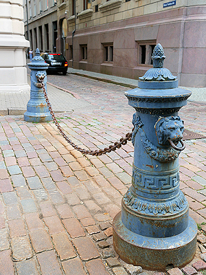 | 美しい装飾が施された車止めの支柱 |