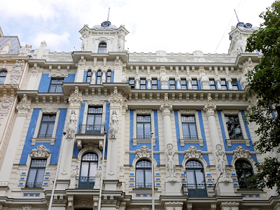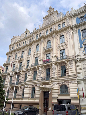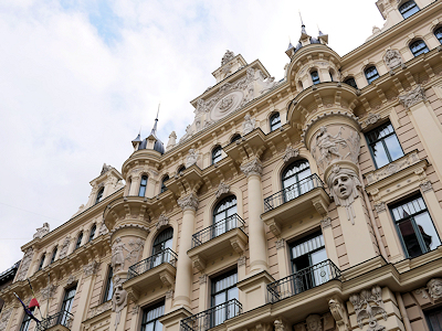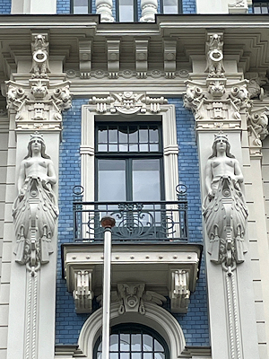 その頃活躍していたロシア出身の建築家ミハイル・エイゼンシュテインは、リガの初期のユーゲント・シュティール様式の建物を数多く設計していて、その建物が多く集まっているのが新市街のアルベルタ通りとその周辺なのだそう。