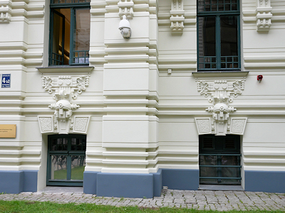 こちらはアルベルタ通りへ出る手前のストレールニエク通りに建っているミハイル・エイゼンシュテイン設計のユーゲント・シュティール様式の建物