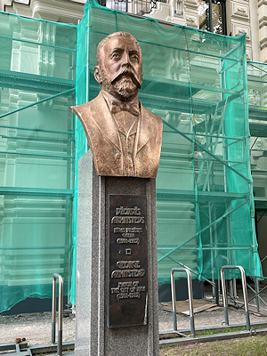 この建物の前に置かれた胸像なので建築家の像かと思いましたが、土台を見たらリガの市長だった方でした