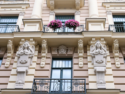 その時期はユーゲントシュティール運動が起こっていたため、多くの建物がこの様式でデザインされ、リガの中心部にある建物の約1/3がこの様式で建てられているのだそう。