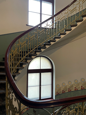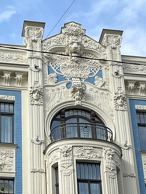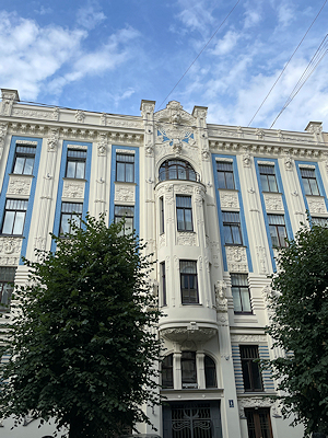 ラトビアのリガ新市街にあるユーゲントシュティール博物館が入っている建物は、内部の螺旋階段がとても美しいということだったので見学したかったのだけれど、建物の入口の扉は鍵がかかっていて入れなかった。