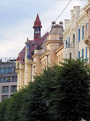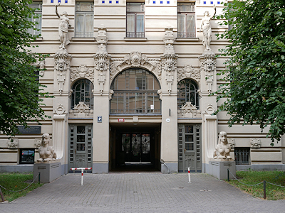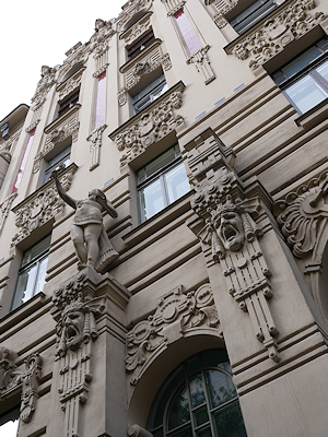 その向かい側にはミハイル・エイゼンシュテイン設計のユーゲント・シュティール様式の建物が建っています↓ |