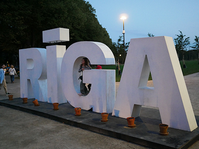 公園の入口にあったリガのモニュメント 旧市街の公園にあったものと同じです