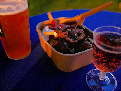 会場に来るまでは、このイベントは屋台で買ったものを持ってどこかで座ってショーを見るような感じなのかと思っていたのだけれど(ファイヤーダンス系かと思っていたので)、さすがに公園を歩いてみたらそういうイベントではなさそうだと気付いたので屋台の近くに置かれたテーブルで食べることにした。