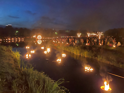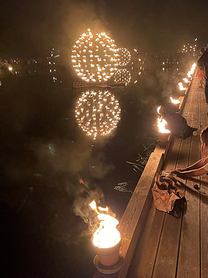 違うカメラで撮っているので上の写真とは色味が違っていますが、川面に炎が映って美しかったです |