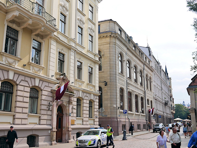 | 誕生日をお祝いするため、多くのラトビアの国旗が掲げられていました |