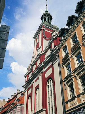 | 聖ペテロ教会の前の広場からは階段状破風が美しい聖ヨハネ教会が見えます |