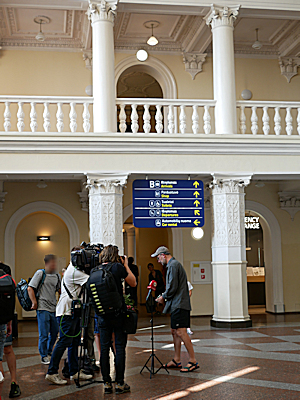 | ロビーにはテレビの取材(の準備?)をしている人たちがいました |