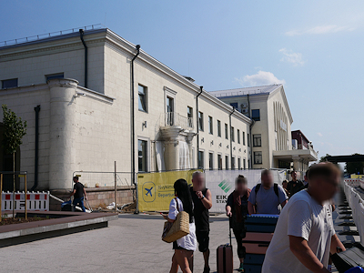 到着ロビーの外に出てみると、工事が行われていて仮囲いで覆われている場所が多かった。