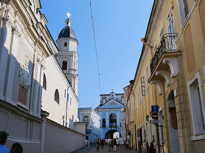 左側は聖テレサ教会 中央に見えているのが夜明けの門 |