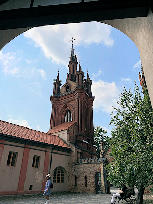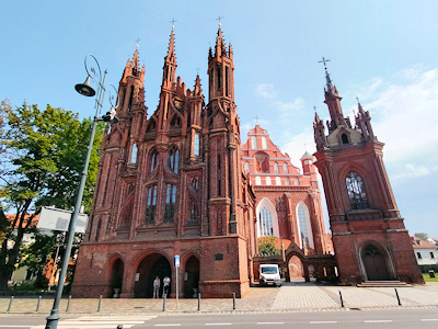 リトアニアの首都ヴィリニュスに建つ聖アンナ(聖オノス)教会を見学する。