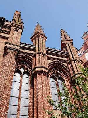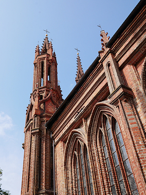 繊細な装飾が施され赤く塗られたレンガでできた外観はとても美しく、1812年フランスのロシア侵攻の際にヴィリニュスに入城したナポレオンが、この教会を見て「フランスに持ち帰りたい」と言ったという話が伝わっている。