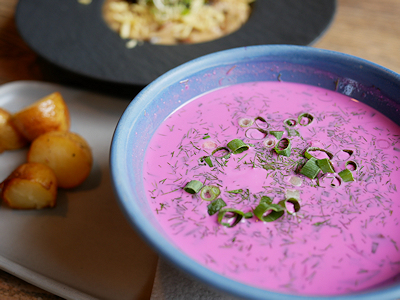 ビーツとケフィア(ヨーグルトのような発酵乳飲料)で作られるスープです 私はこの旅で訪れたリガで初めて飲みましたが大好きな味でした