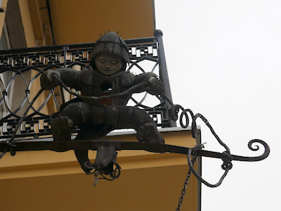 看板上の装飾 稀代の大泥棒…ではなく煙突掃除夫でしょうか |