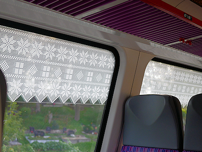 | 窓には日除けだと思いますがレースのような柄のシートが貼られていました |