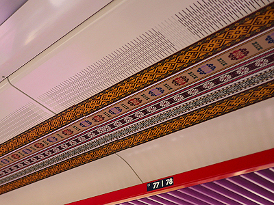 | 天井も伝統的な模様のラインで飾られています |